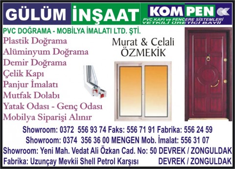 Gülüm İnşaat PVC Doğ. Mob.Ltd.Şti. Ayrıntılı Bilgi İçin Tıklayınız |