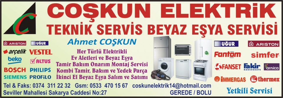 Coşkun Elektrik Teknik Servis Ayrıntılı Bilgi İçin Tıklayınız |