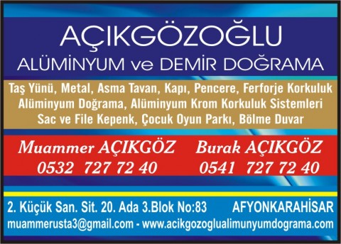 Açıkgözoğlu Alüminyum ve Demir Doğrama Ayrıntılı Bilgi İçin Tıklayınız