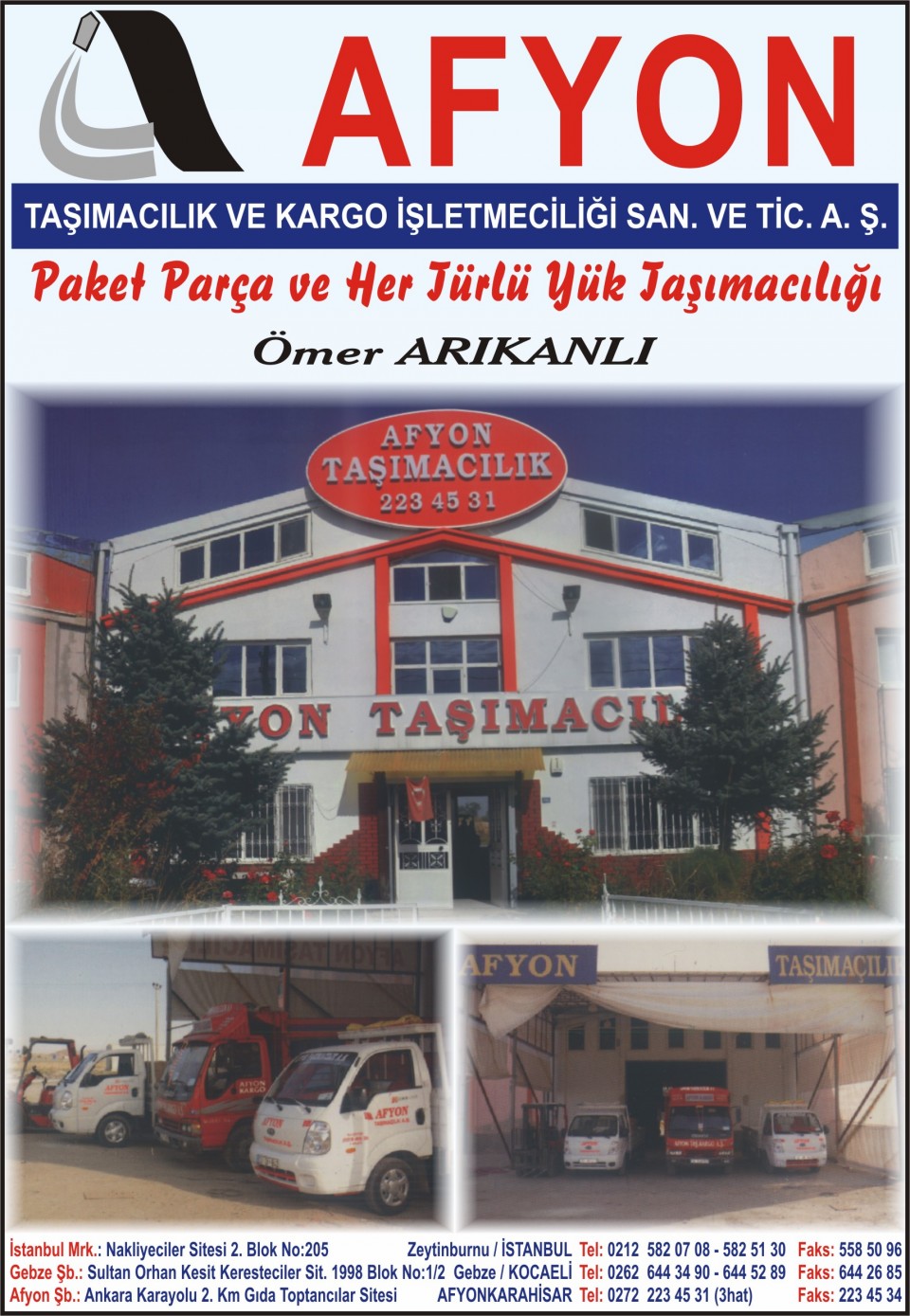 | Afyon Taşımacılık ve Kargo İşlt. | 0272 | 223 45 31 |