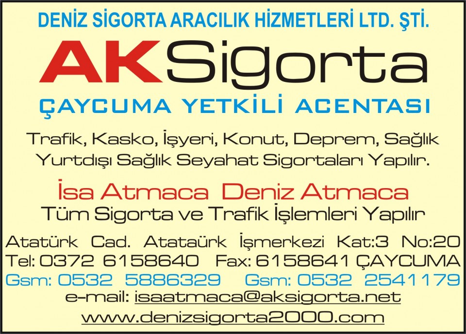 Deniz Sigorta Aracılık Hiz.(Ak sigorta) Ayrıntılı Bilgi İçin Tıklayınız