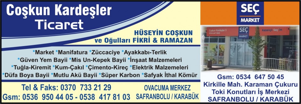 COŞKUN KARDEŞLER TİCARET Ayrıntılı Bilgi İçin Tıklayınız