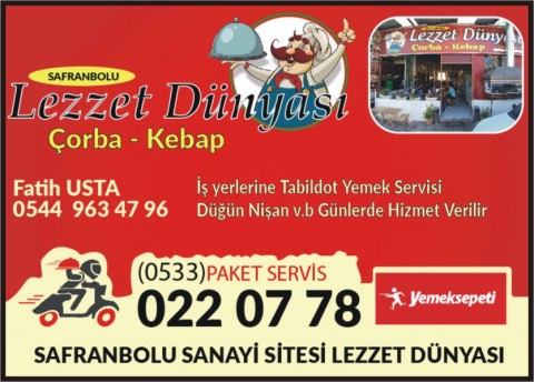 MEŞHUR ADIYAMAN ÇİĞ KÖFTECİSİ ÖMER AYBAK Furkan ÖZTÜRK Tel: 725 49 59 Evlere Paket Servisimiz Vardır Gsm: 0544 781 24 78 – 0545 725 49 59 Atatürk Mahallesi Misak-ı Milli Meydanı Demet Apartmanı No:15/C SAFRANBOLU |